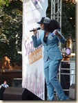 Susan poses with a policeman. Andrea suggests the handcuffs would look cool, but its not to be.